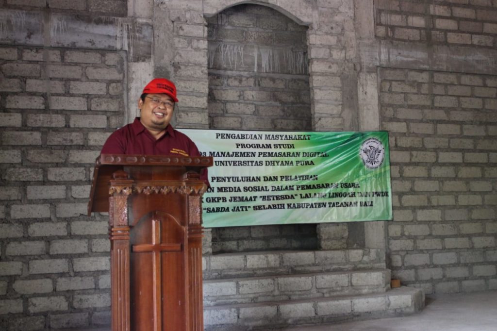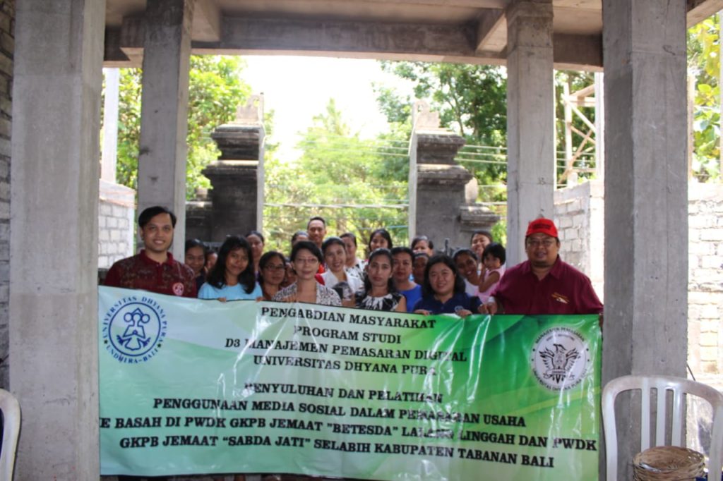 Pada hari Senin, 25 November 2019, telah diselenggarakan acara Pengabdian Program Studi D3 Manajemen Pemasaran Digital Tahun 2019. Acara dibuka oleh Kaprodi D3 Manajemen Pemasaran Digital Bapak I Made Endra Puniawan, SE.,MM dan dilanjutkan dengan pelatihan social media oleh Ida Bagus Kurniawan,S.Kom.,M.Kom dan pelatihan membuat buku keuangan oleh Natalia Sri Endah Kurniawati, SE.,M.SA. Acara pengabdian ini bertujuan untuk memberikan pelatihan dan sosialisasi penggunaan media sosial terhadap PWDK GKPB Lalang Linggah dan PWDK GKPB Selabih. Sehingga PWDK GKPB Lalang Linggah dan PWDK GKPB Selabih dapat memasarkan produknya secara lebih luas lagi.