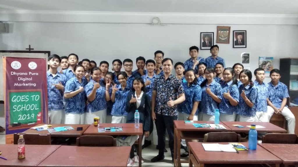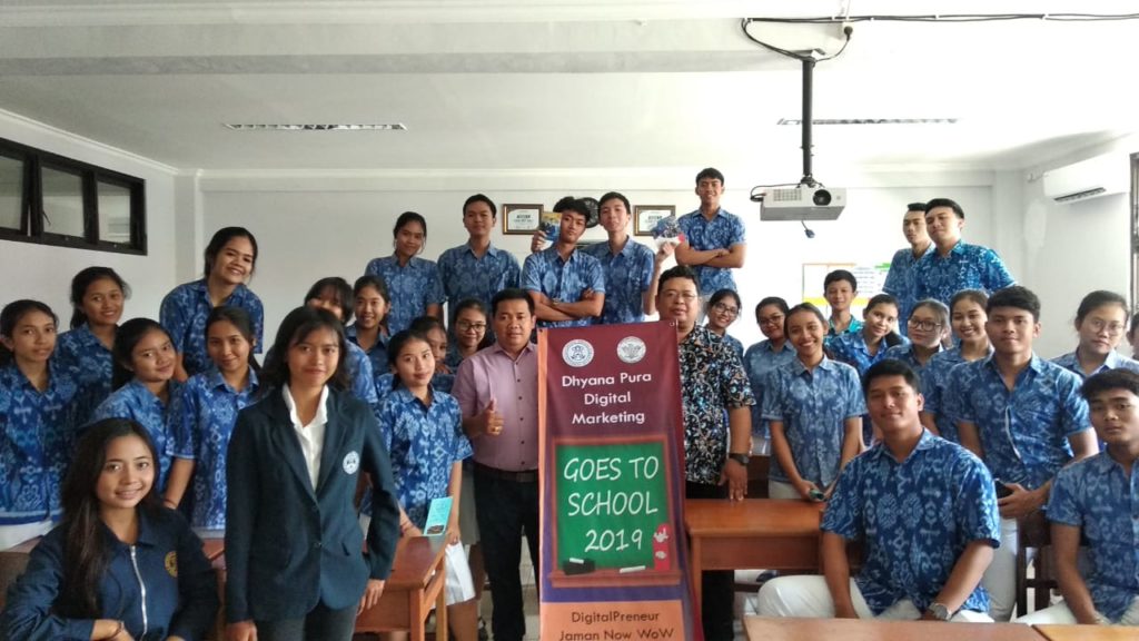 Rabu, 18 Desember 2019. Menjadi seorang Digitalpreneur merupakan profesi yang sangat menguntungkan di era globalisasi ini. Karena hampir dalam segala aspek kehidupan masyarakat di Indonesia sudah menggunakan teknologi digital. Adapun untuk menjadi seorang Digitalpreneur harus menguasai beberapa hal yang antara lain menguasai dunia smartphone, menguasai dunia internet, memiliki jaringan bisnis yang luas dan memiliki keunikan dalam produk yang dijual, hal tersebut disampaikan oleh Bapak Heri Firmanto,S.Si. Teol.,M.Si selaku salah satu pengisi acara Dhyana Pura Digital Marketing goes to School 2019 di SMK Wira Harapan. Dalam acara tersebut Bapak I Made Endra Puniawan, SE.,MM selaku Ketua Program Studi D3 Manajemen Pemasaran Digital juga menyampaikan bahwa dengan menjadi digitalpreneur kita dapat meraih pendapatan yang besar terutama digitalpreneur di bidang pariwisata. Sedangkan pengisi acara lain yaitu Bapak Ida Bagus Kurniawan, S.Kom.,M.Kom menyampaikan dengan menjadi digitalpreneur para siswa dapat meneruskan usaha orang tua dan dapat mempromosikan produk yang dijual menggunakan teknologi digital marketing. Acara Dhyana Pura Goes To School ini adalah acara tahunan yang diselenggarakan oleh Program Studi D3 Manajemen Pemasaran Digital, acara ini bertujuan untuk memberikan wawasan kepada siswa SMA/SMK mengenai hal-hal yang berkaitan dengan digital marketing dan juga memberikan informasi mengenai Program Studi D3 Manajemen Pemasaran Digital.